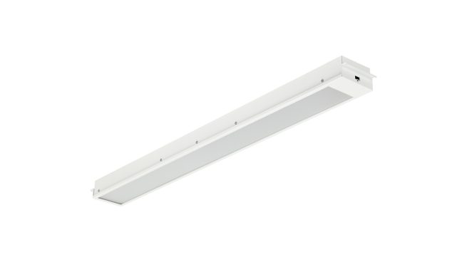 Recessed, 1200X125 mm, Steel, White, Signal white (RAL9003), Single layer powder coating, Mounting bracket - fixed height 40 mm - For T/Omega profiles, Power supply unit with DALI interface, DC compatible for central emergency lighting (integrated), 3600 lm, 36 W, 100 lm/W, 4000 K, (0.38, 0.38) SDCM ≤3.0, CRI>90, UGR19, Wide beam office compliant, White reflector, Micro-lens optic, Polymethyl methacrylate, IP20 | Finger-protected, IK03 | 0.3 J, Safety class I, Push-in connector 5-pole, TP(b) diffuser flammability class, DC operated central emergency lighting