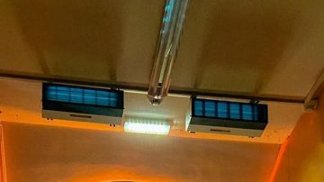 The units are suspended on brackets from the ceiling. This high position, in combination with the luminaires’ design, allows the system to disinfect air as it circulates the room, even when there are people present.