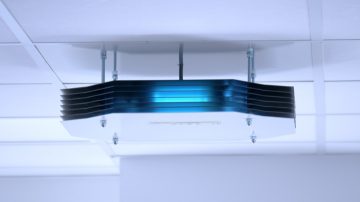 Philips UV-C disinfection upper air luminaires continuously disinfect the air that flows through the upper areas of the room thanks to natural convection, or air circulation. This also ensures that the disinfected air flows back to the lower part of the room and mixes with the air. The beam of UV-C rays is controlled by specific reflectors and the louvre design, which allows This allows quiet disinfection of air while daily activities can continue safely.
